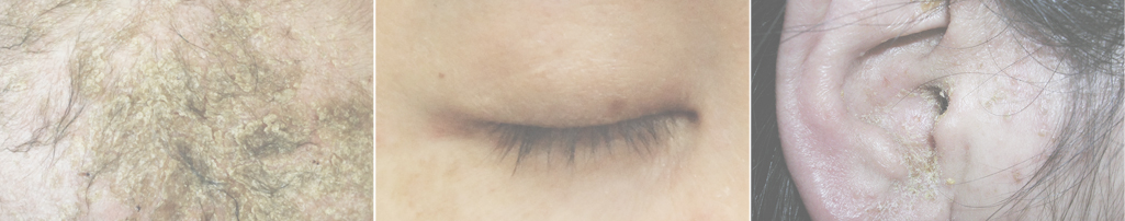 20~40대에 호발하며, 전 인구의 1~3% 성인에게서 발생하는 피부질환입니다. 주로 두피, 이마, 코, 콧방울 주변, 입술, 눈썹, 귀 뒷부분, 귀밑머리, 가슴(흉골부위) 겨드랑이, 유방하부, 배꼽, 사타구니, 엉덩이 등 피지 분비가 왕성한 곳에서 발생하며, 흰색, 노란색 혹은 적색을 띠는 기름기의 인설성 반과 구진이 나타나며 경계가 확실합니다.