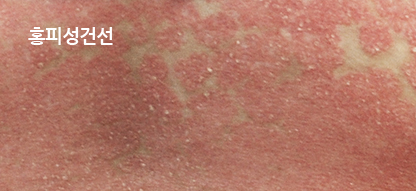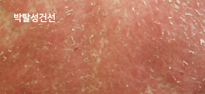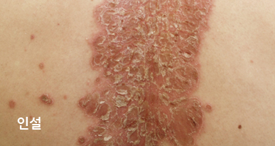건선은 이러한 홍반 위에 인설이 동반되게 됩니다. -