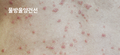 건선의 모양이 이름 그대로 물방울과 같이 방울방울 흩어져 있는 형태를 띱니다.