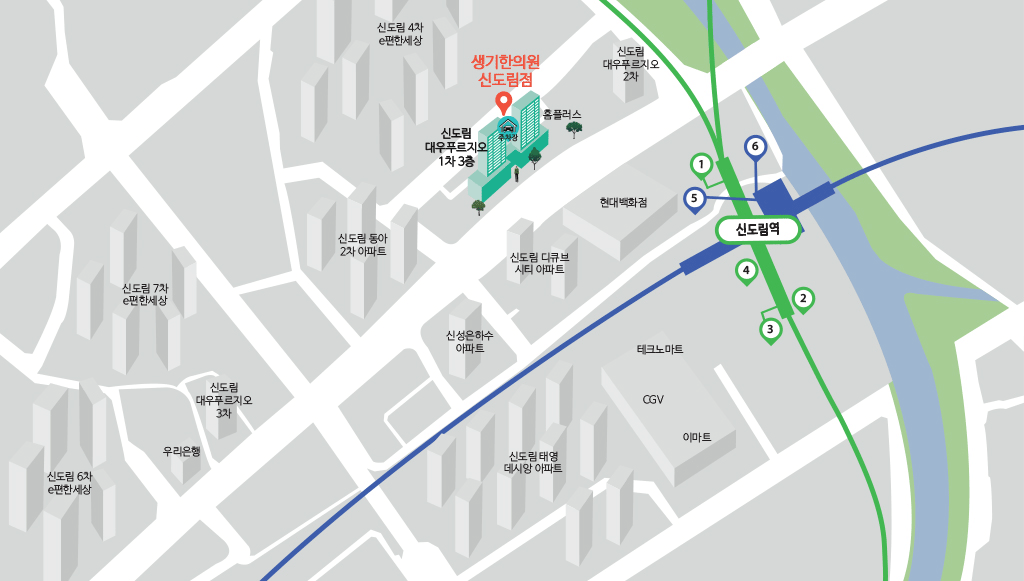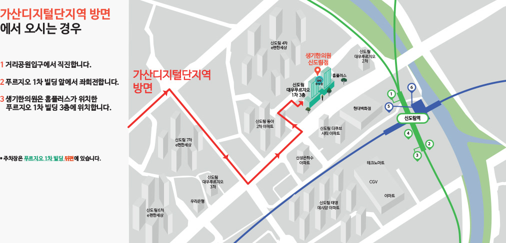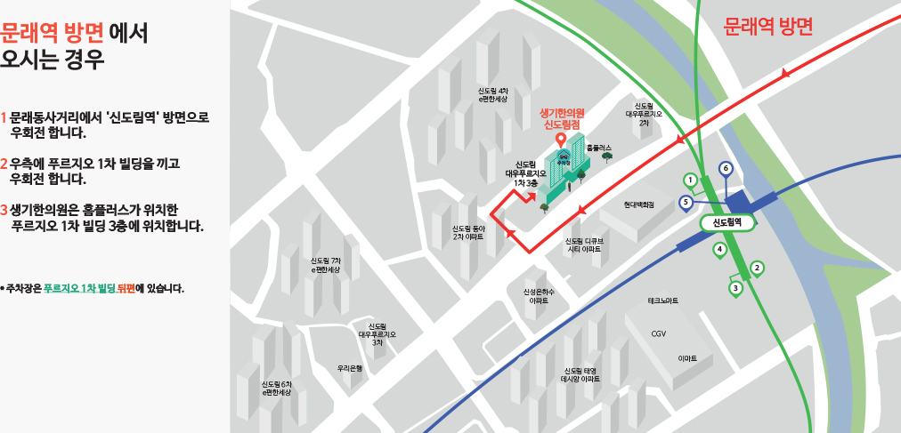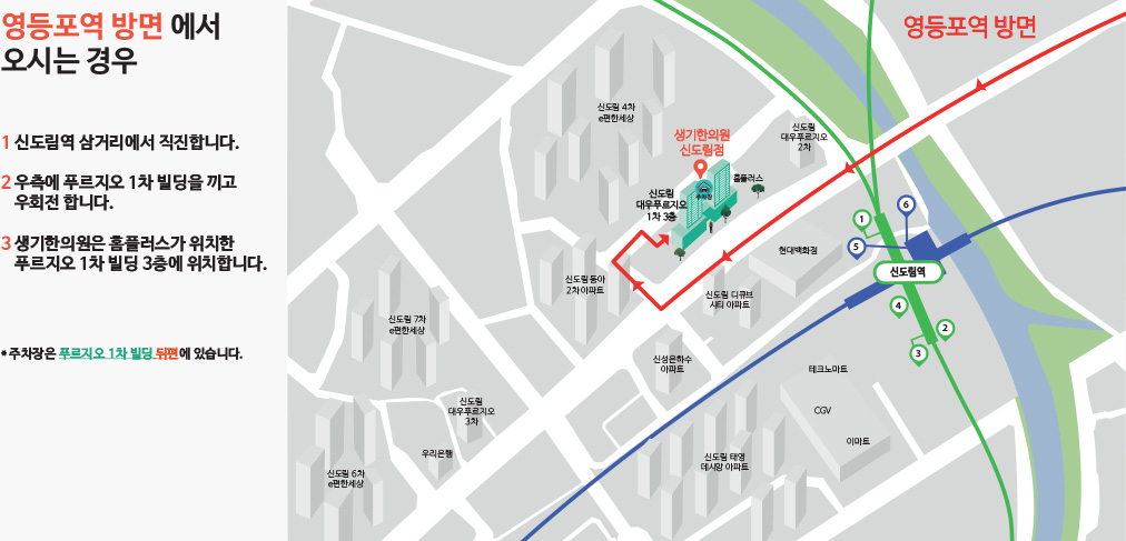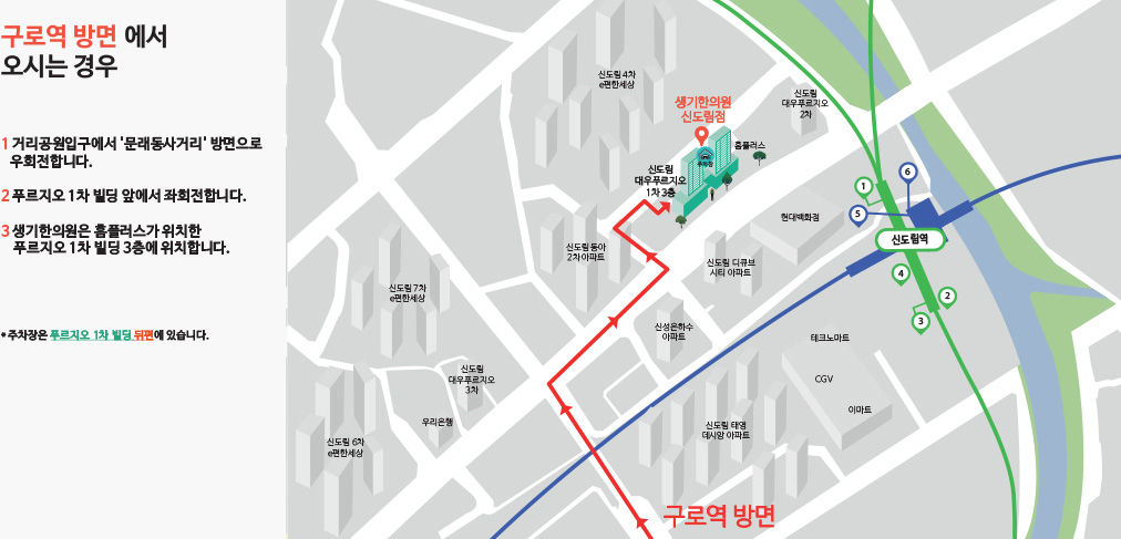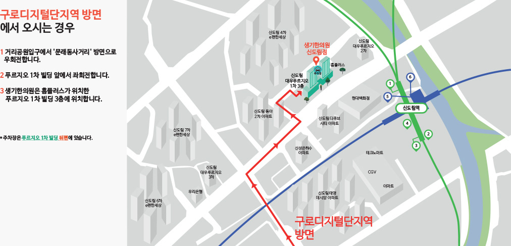 오시는 길 네비게이션에서 '생기한의원 신도림점'을 검색해보세요!