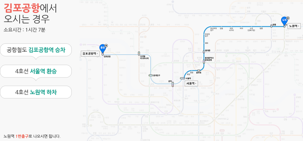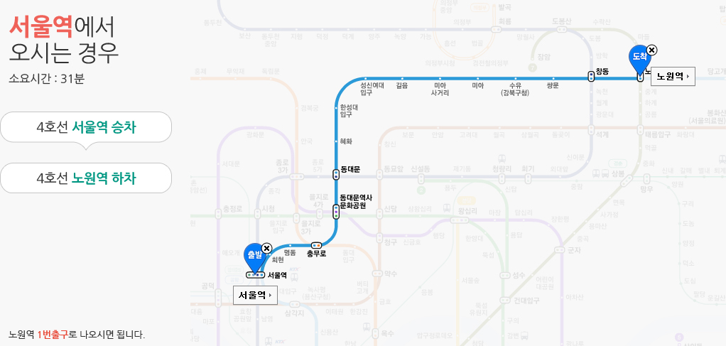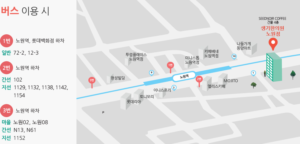 생기한의원 노원점은 지하철 4호선 노원역 1번 출구
