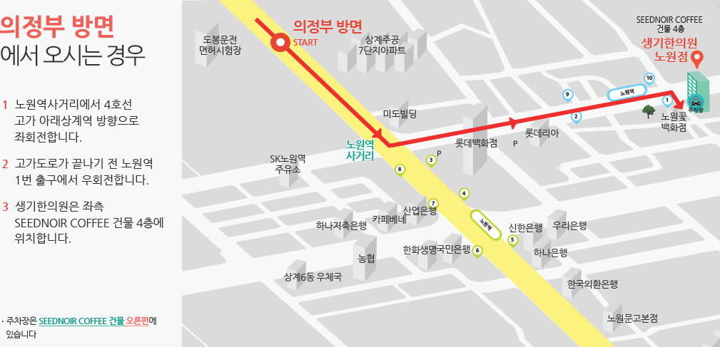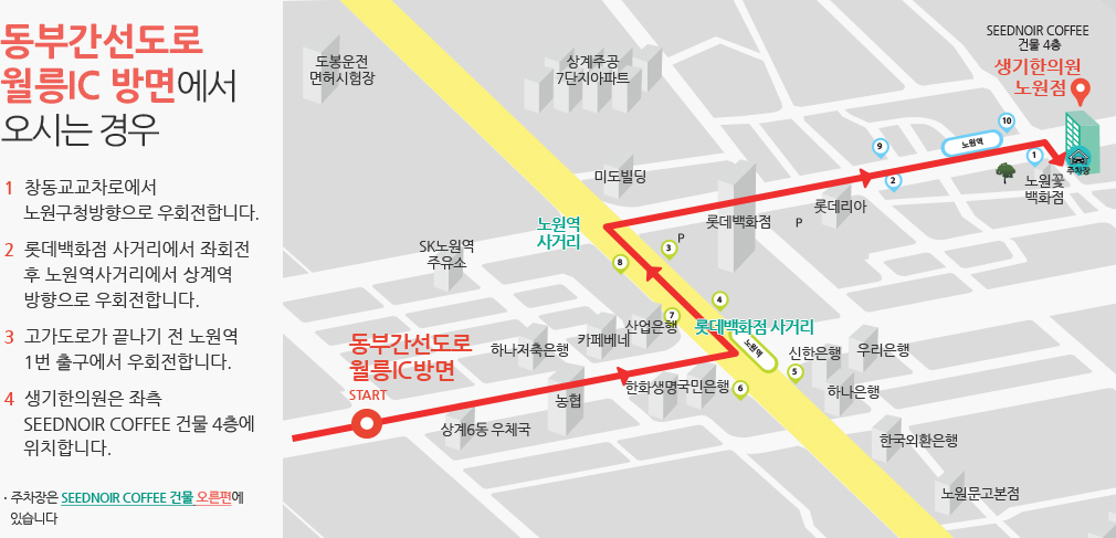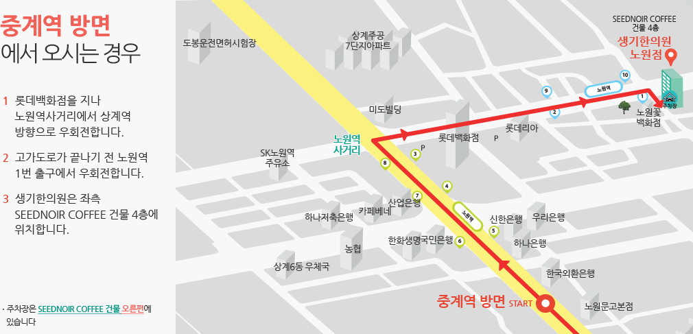 오시는 길 네비게이션에서 '생기한의원 노원점'을 검색해보세요!