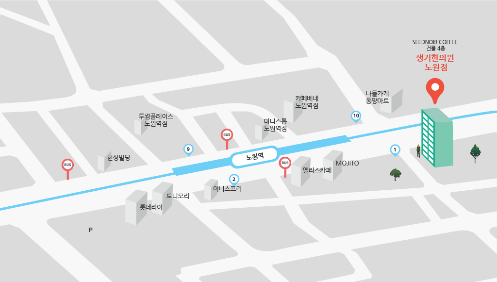 - 주소 : 서울시 노원구 상계동 341-5 큐비스트빌딩 4층(1층 시드누아커피)